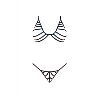 Bra and G-String Set with Straps - L/XL - Black