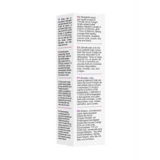 Straightforward, yet super-powerful! This Be Good Tonight single-speed bullet always delivers! Length is 9.3cm (3.7inch), girth 1.8cm (0.7inch), taking a single AAA battery (not included). Available colours: pink, purple, red, blue and black.