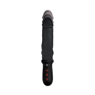 Get a handle on your pleasure with this vibrating and automatic thrusting dildo! The realistic design provides a genuine feel with its defined phallic head and lengthwise veins that snake up and down its black shaft. Enjoy the back and forth thrusting and powerful vibrations with a firm grip - perfect for those who like to play rough and need a more secure grip on their toys!The easy to reach, easy to use controls on the handle of this Pounder allow you to change up the way you play with ease! Cycle through 8 modes of vibration to go along with the 3 speeds of automatic thrusting and find the perfect combination that suits your playstyle. Wrap your hands around the grippy handle of this dildo to pound your partner with more confidence - add another layer of pleasure and switch on the vibration as you thrust their holes to climax!Made with vevlety phthalate free silicone for a body safe play session and rechargeable via included USB charging cable. IPX5 waterproof for ease of cleaning! Avoid use with silicone based lubes to prolong the life of your Automatic Pounding Dildo.Measurements: Total length 11.5 inches, Insertable length 7.5 inches, widest width 1.65 inches. 1 of thrust extension.Materials: Phthalate free silicone and ABS plasticColor: Black